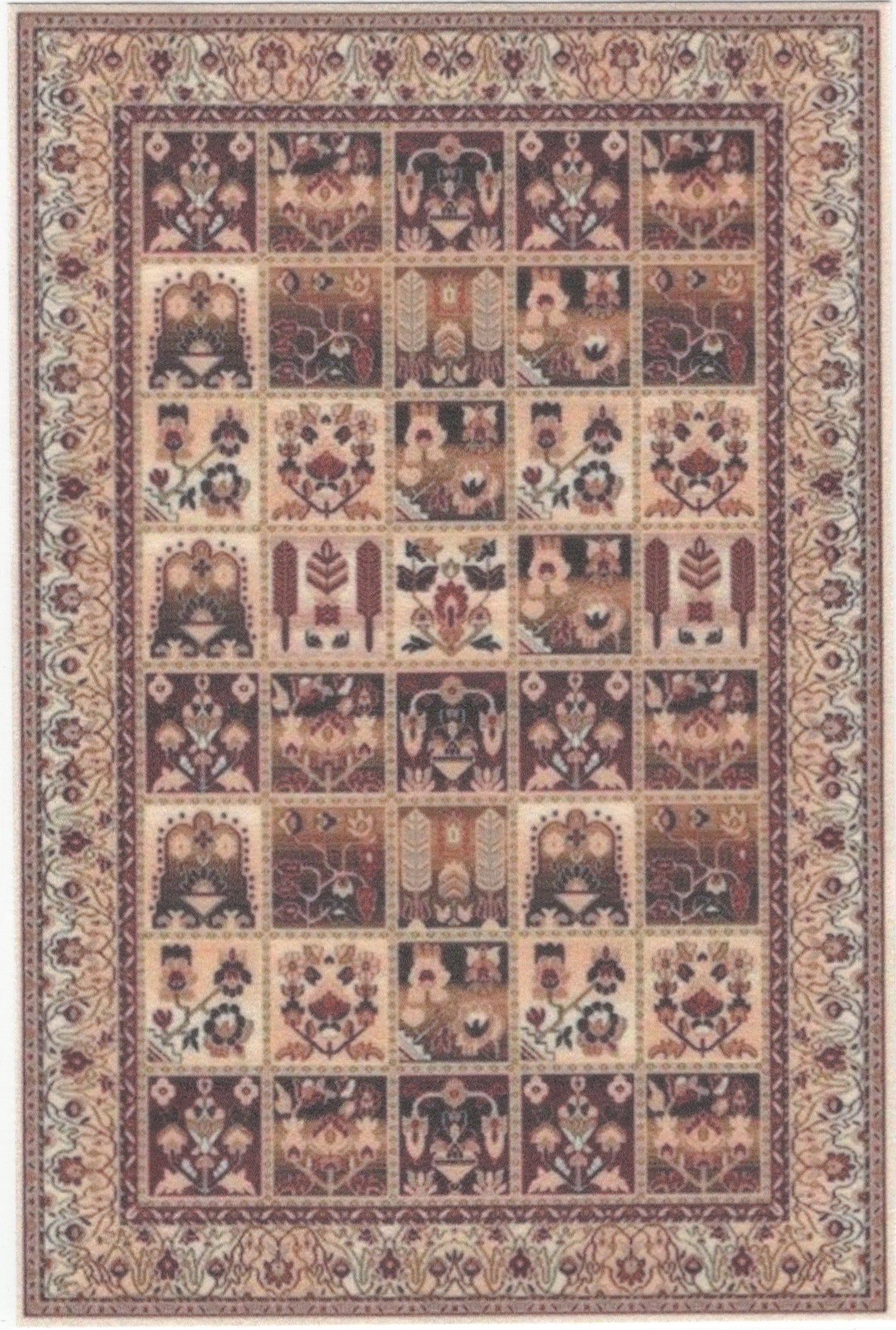 This is a 1:12 or 1" scale dollhouse miniature area rug in earth tone colors. It measures approximately 4-5/8" x 7". Because colors don't always appear the same on every monitor, the actual dollhouse rug may be a slightly different color than what you see on your screen. The dollhouse rug is printed on velvet paper giving it the look and feel of a real rug. Velvet paper is heavier than regular paper resulting in a rug that lies flatter than rugs printed on thinner paper products. It is about the thickness of card stock but not stiff. It has velvet flocking on one side and plain paper on the back side. All dollhouse rugs are printed with water resistant inks.