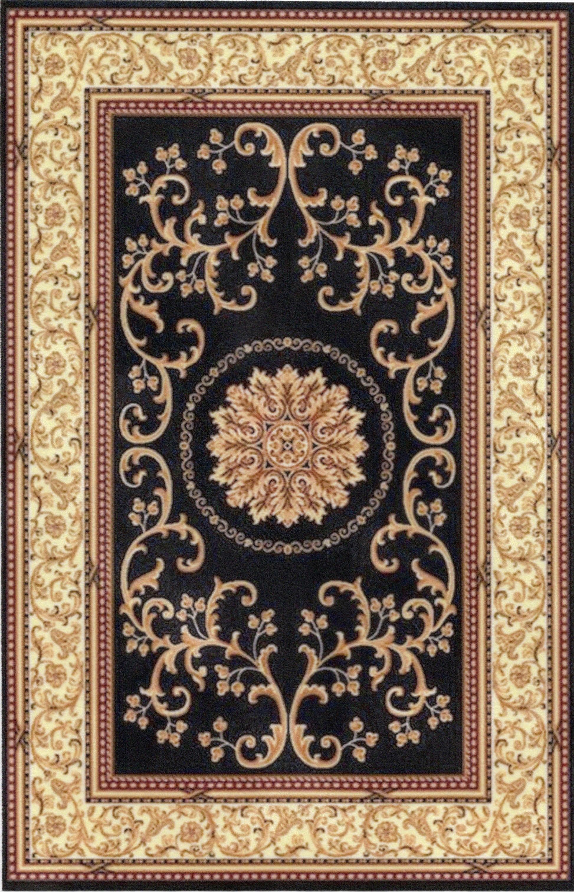 This is a 1:12 or 1" scale dollhouse miniature area rug in gold and black. It measures approximately 6-1/2" x 10-1/4". Because colors don't always appear the same on every monitor, the actual dollhouse rug may be a slightly different color than what you see on your screen. The dollhouse rug is printed on velvet paper giving it the look and feel of a real rug. Velvet paper is heavier than regular paper resulting in a rug that lies flatter than rugs printed on thinner paper products. It is about the thickness of card stock but not stiff. It has velvet flocking on one side and plain paper on the back side.