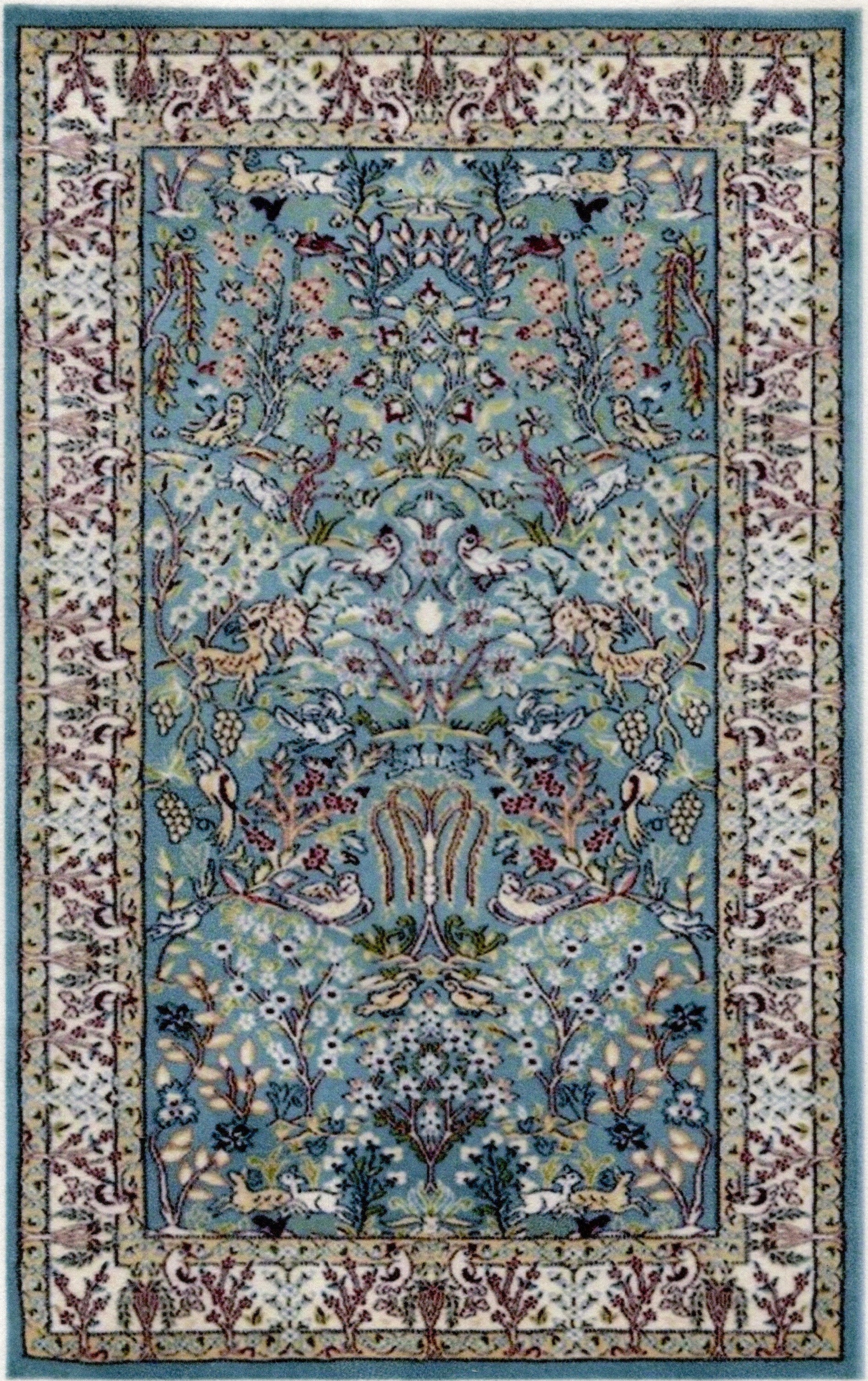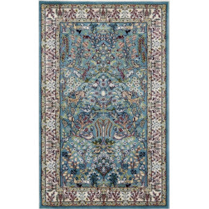 This is a 1:12 or 1" scale dollhouse miniature nature themed area rug in teal and off-white. It measures approximately 6-1/4" x 10". Because colors don't always appear the same on every monitor, the actual dollhouse rug may be a slightly different color than what you see on your screen. The dollhouse rug is printed on velvet paper giving it the look and feel of a real rug. Velvet paper is heavier than regular paper resulting in a rug that lies flatter than rugs printed on thinner paper products. It is about the thickness of card stock but not stiff. It has velvet flocking on one side and plain paper on the back side.