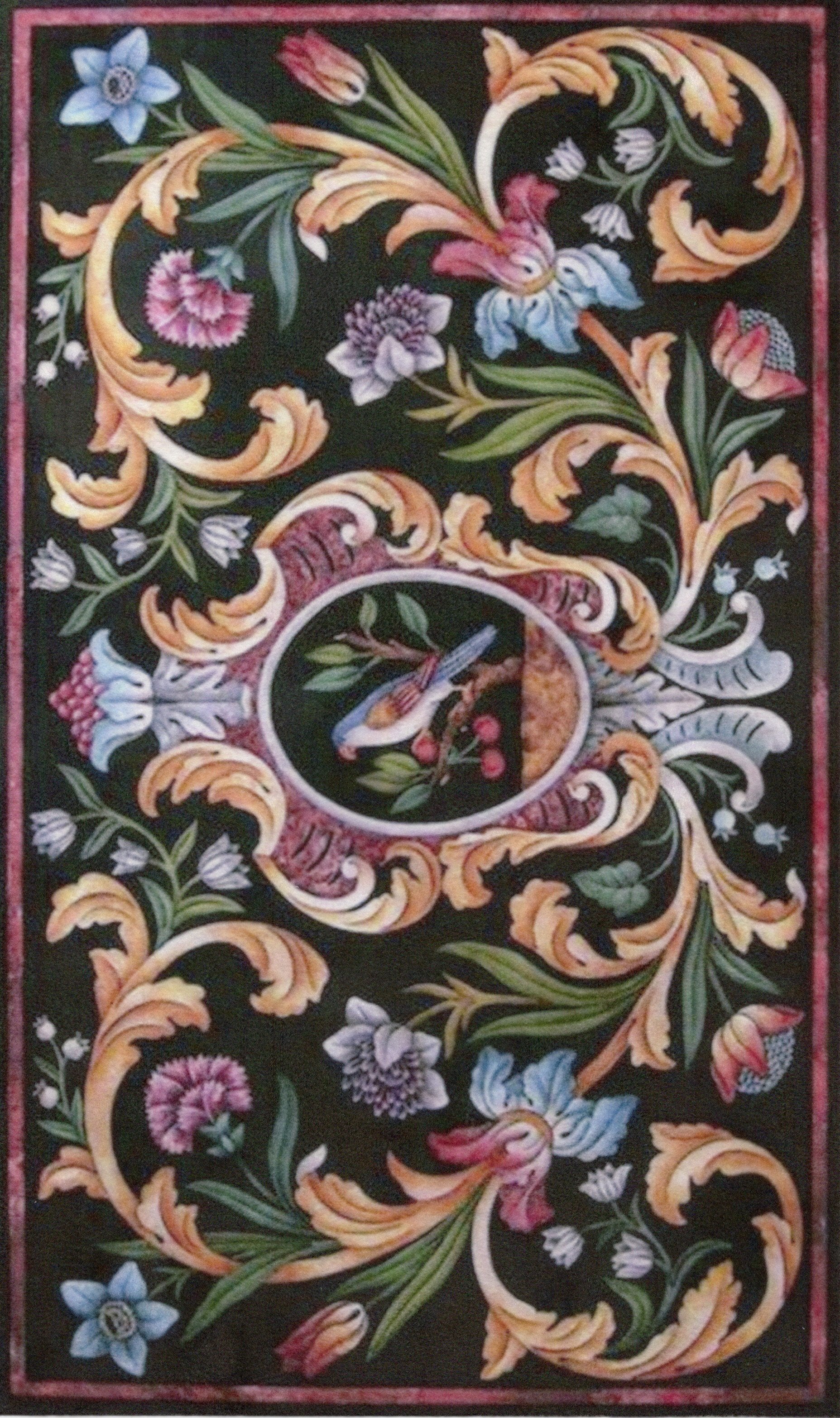 This is a 1:12 or 1" scale dollhouse miniature area rug in black, blue, pink and tan. It measures approximately 6-1/4" x 10-1/2". Because colors don't always appear the same on every monitor, the actual dollhouse rug may be a slightly different color than what you see on your screen. The dollhouse rug is printed on velvet paper giving it the look and feel of a real rug. Velvet paper is heavier than regular paper resulting in a rug that lies flatter than rugs printed on thinner paper products. It is about the thickness of card stock but not stiff. It has velvet flocking on one side and plain paper on the back side.