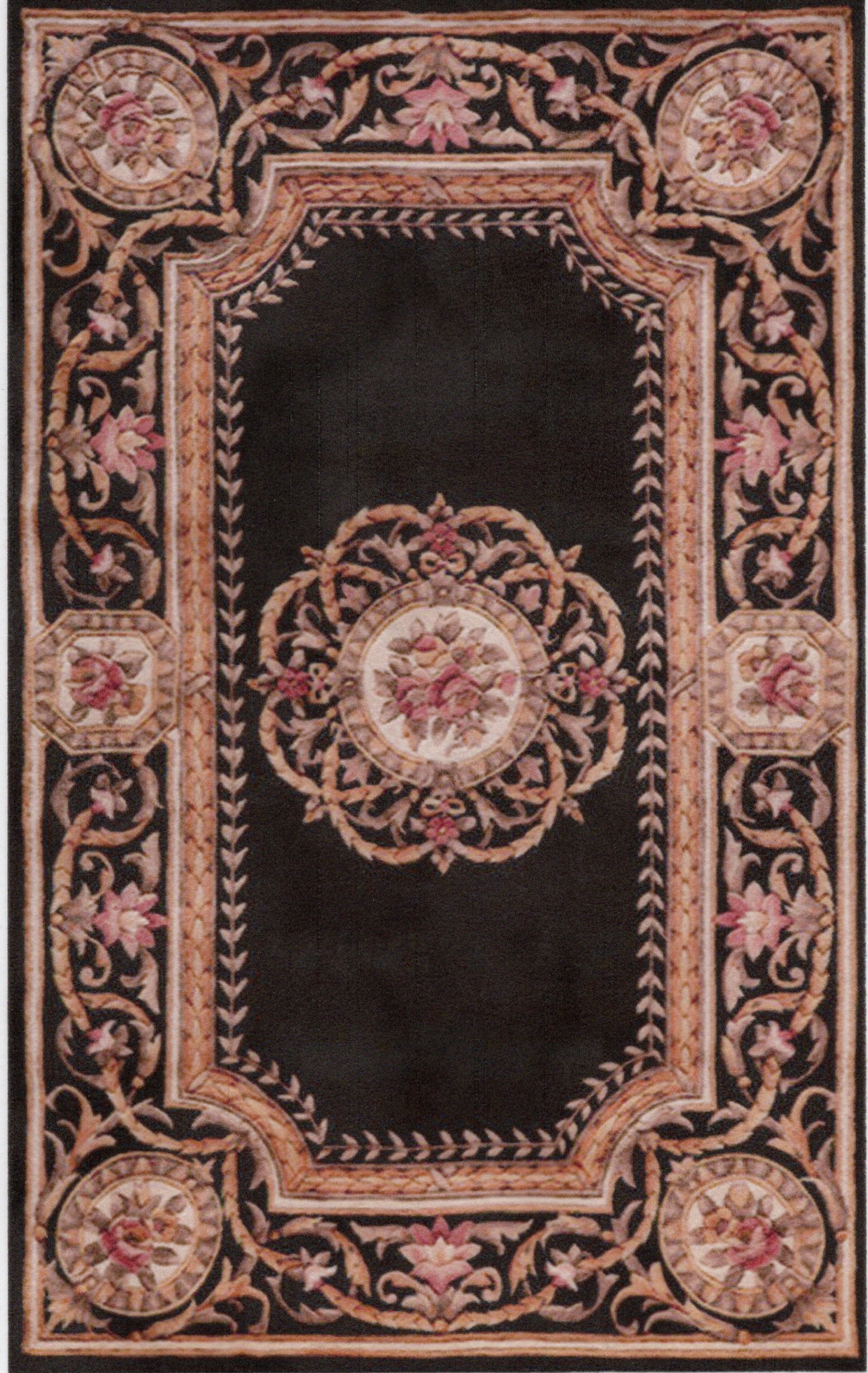 This is a 1:12 or 1" scale dollhouse miniature area rug in black, gold, pink and ivory. It measures approximately 6-1/4" x 10-1/8". Because colors don't always appear the same on every monitor, the actual dollhouse rug may be a slightly different color than what you see on your screen. The dollhouse rug is printed on velvet paper giving it the look and feel of a real rug. Velvet paper is heavier than regular paper resulting in a rug that lies flatter than rugs printed on thinner paper products. It is about the thickness of card stock but not stiff. It has velvet flocking on one side and plain paper on the back side.