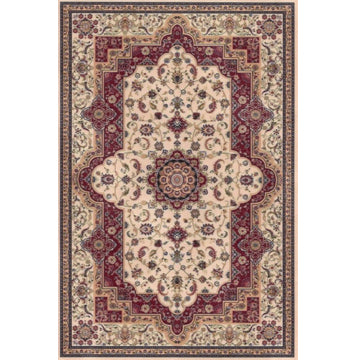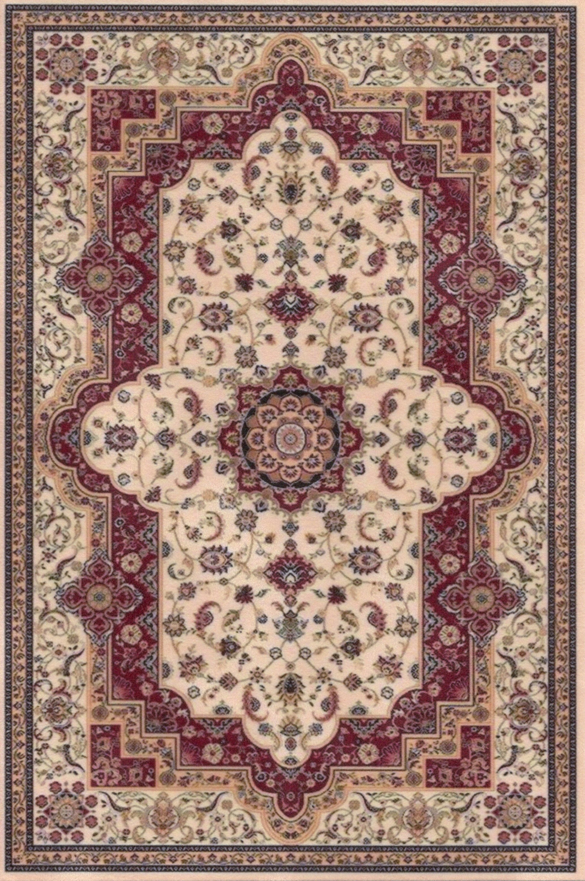 This is a 1:12 or 1" scale dollhouse miniature area rug in ivory, burgundy, green and gold. It measures approximately 6-7/8" x 10-3/8". Because colors don't always appear the same on every monitor, the actual dollhouse rug may be a slightly different color than what you see on your screen. The dollhouse rug is printed on velvet paper giving it the look and feel of a real rug. Velvet paper is heavier than regular paper resulting in a rug that lies flatter than rugs printed on thinner paper products. It is about the thickness of card stock but not stiff. It has velvet flocking on one side and plain paper on the back side.