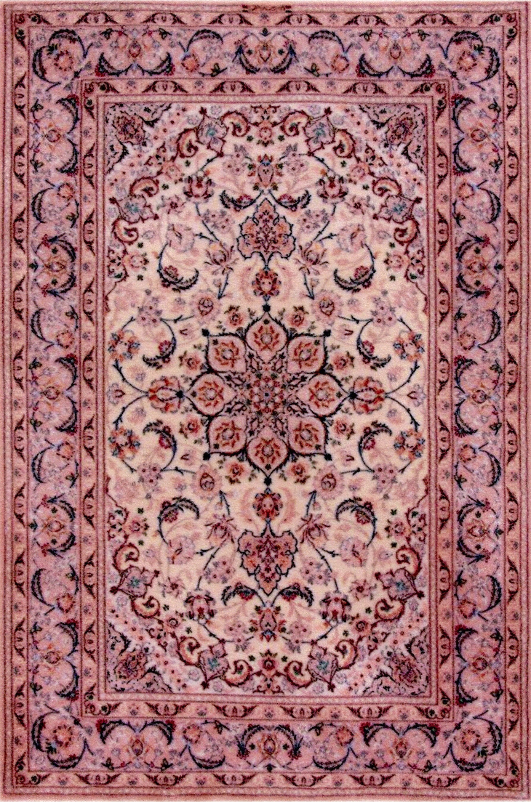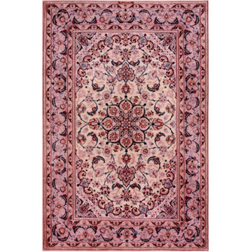 This is a 1:12 or 1" scale dollhouse miniature area rug in pink, black, and burgundy. It measures approximately 6" x 9". Because colors don't always appear the same on every monitor, the actual dollhouse rug may be a slightly different color than what you see on your screen. The dollhouse rug is printed on velvet paper giving it the look and feel of a real rug. Velvet paper is heavier than regular paper resulting in a rug that lies flatter than rugs printed on thinner paper products. It is about the thickness of card stock but not stiff. It has velvet flocking on one side and plain paper on the back side. All dollhouse rugs are printed with water resistant inks.