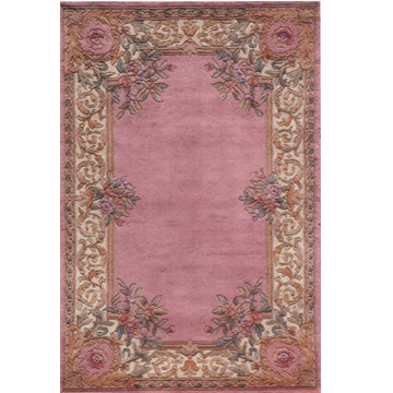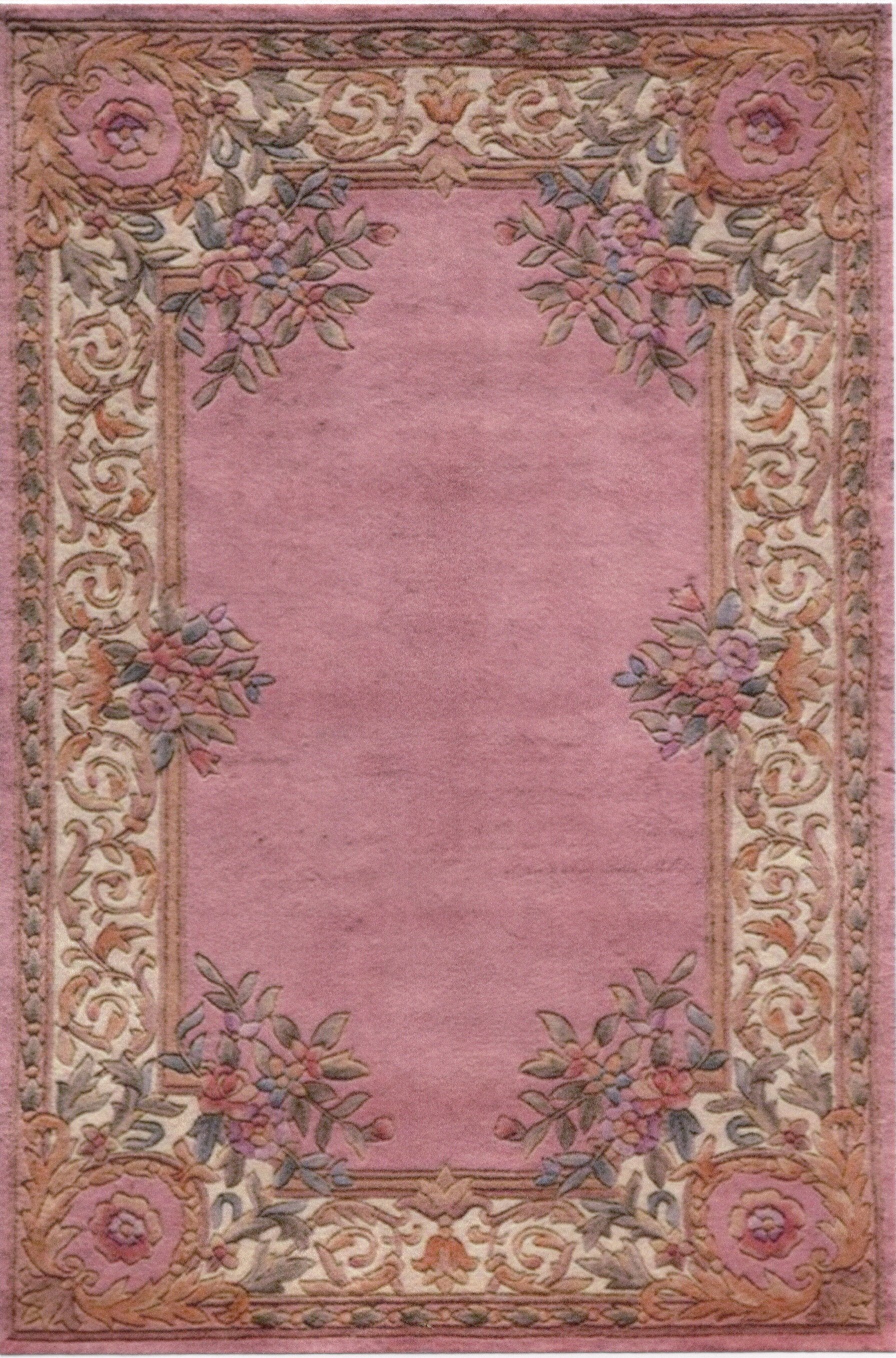 This is a 1:12 or 1" scale miniature area rug with a pink background. Other colors are ivory, gold and green. It measures approximately 6" x 9". Because colors don't always appear the same on every monitor, the actual dollhouse rug may be a slightly different color than what you see on your screen. The dollhouse rug is printed on velvet paper giving it the look and feel of a real rug. Velvet paper is heavier than regular paper resulting in a rug that lies flatter than rugs printed on thinner paper products. It is about the thickness of card stock but not stiff. It has velvet flocking on one side and plain paper on the back side.