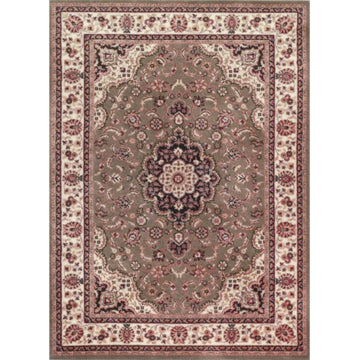 This is a 1:12 or 1" scale dollhouse miniature area rug in green, black, burgundy and ivory. It measures approximately 7-1/16" x 9-3/4". Because colors don't always appear the same on every monitor, the actual dollhouse rug may be a slightly different color than what you see on your screen. The dollhouse rug is printed on velvet paper giving it the look and feel of a real rug. Velvet paper is heavier than regular paper resulting in a rug that lies flatter than rugs printed on thinner paper products. It is about the thickness of card stock but not stiff. It has velvet flocking on one side and plain paper on the back side.
