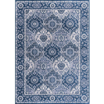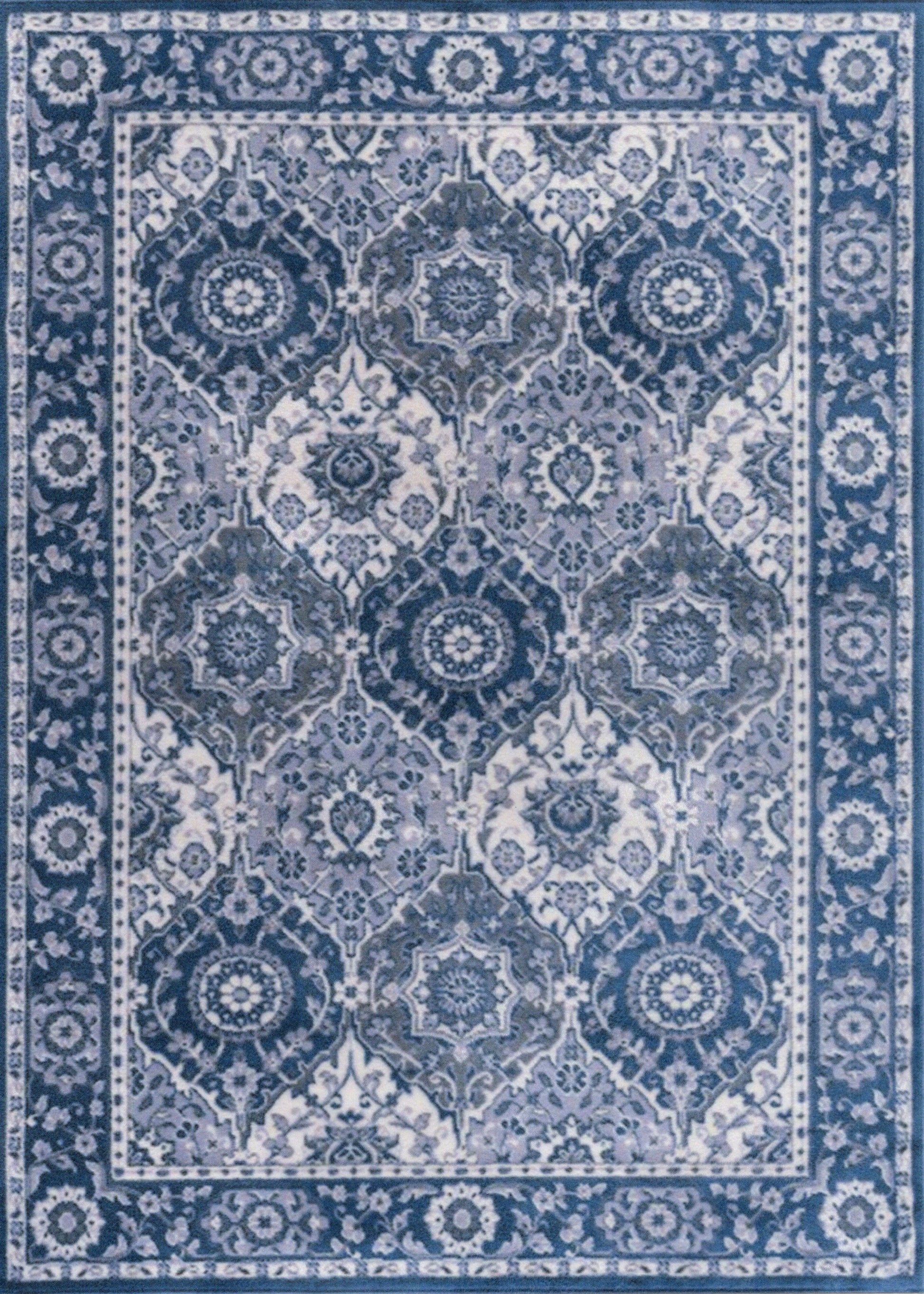 This is a 1:12 or 1" scale dollhouse miniature area rug in blue, gray and ivory. It measures approximately 7-1/2" x 10-1/8". Because colors don't always appear the same on every monitor, the actual dollhouse rug may be a slightly different color than what you see on your screen. The dollhouse rug is printed on velvet paper giving it the look and feel of a real rug. Velvet paper is heavier than regular paper resulting in a rug that lies flatter than rugs printed on thinner paper products. It is about the thickness of card stock but not stiff. It has velvet flocking on one side and plain paper on the back side.