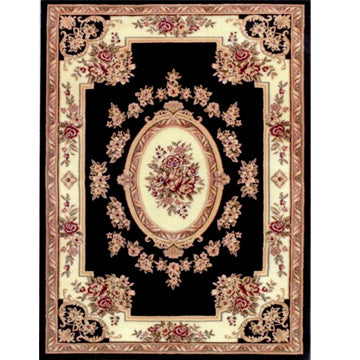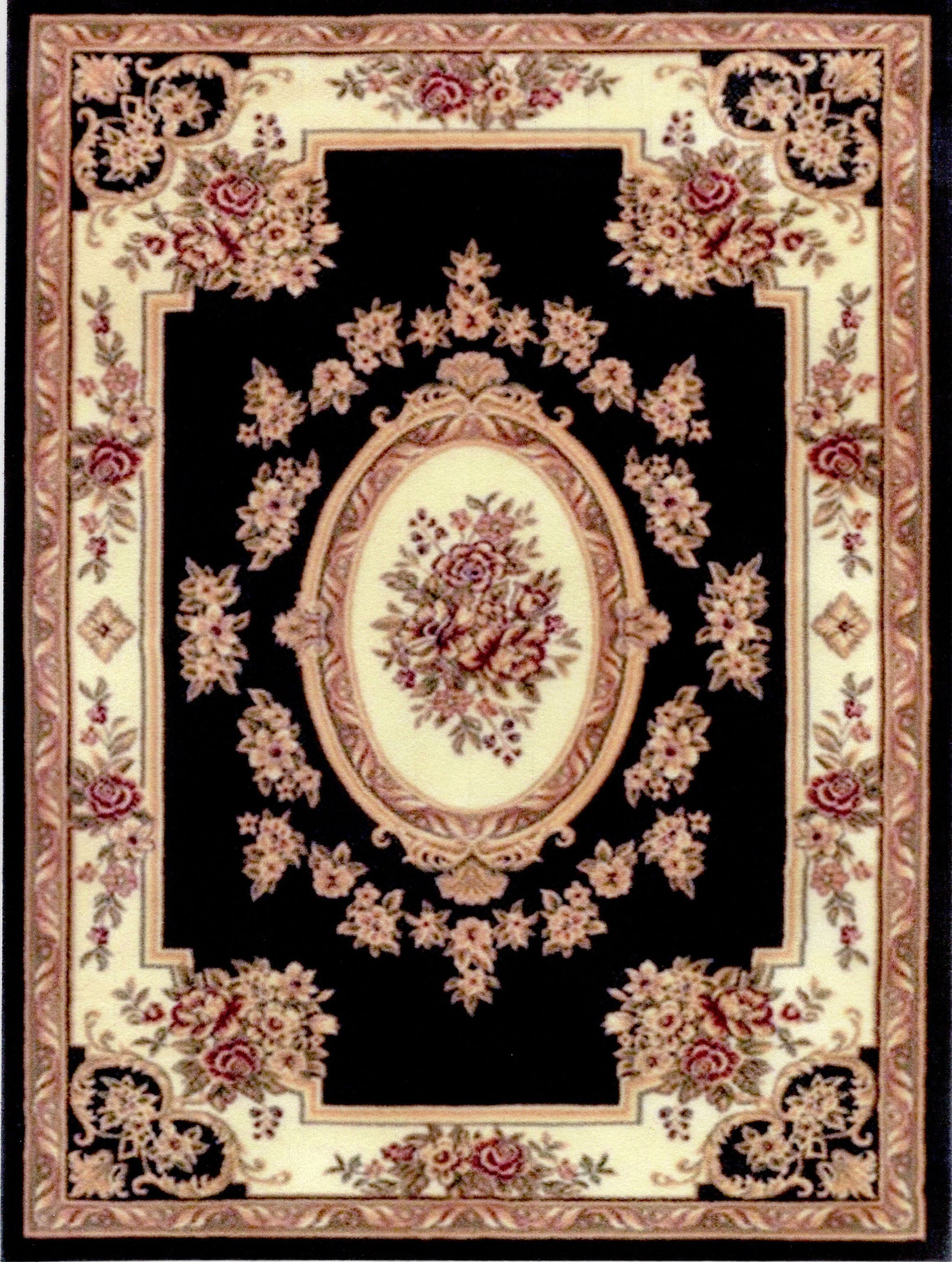 This is a 1:12 or 1" scale dollhouse miniature area rug black, gold, burgundy and ivory. It measures approximately 7-3/4" x 10-1/2". Because colors don't always appear the same on every monitor, the actual dollhouse rug may be a slightly different color than what you see on your screen. The dollhouse rug is printed on velvet paper giving it the look and feel of a real rug. Velvet paper is heavier than regular paper resulting in a rug that lies flatter than rugs printed on thinner paper products. It is about the thickness of card stock but not stiff. It has velvet flocking on one side and plain paper on the back side.