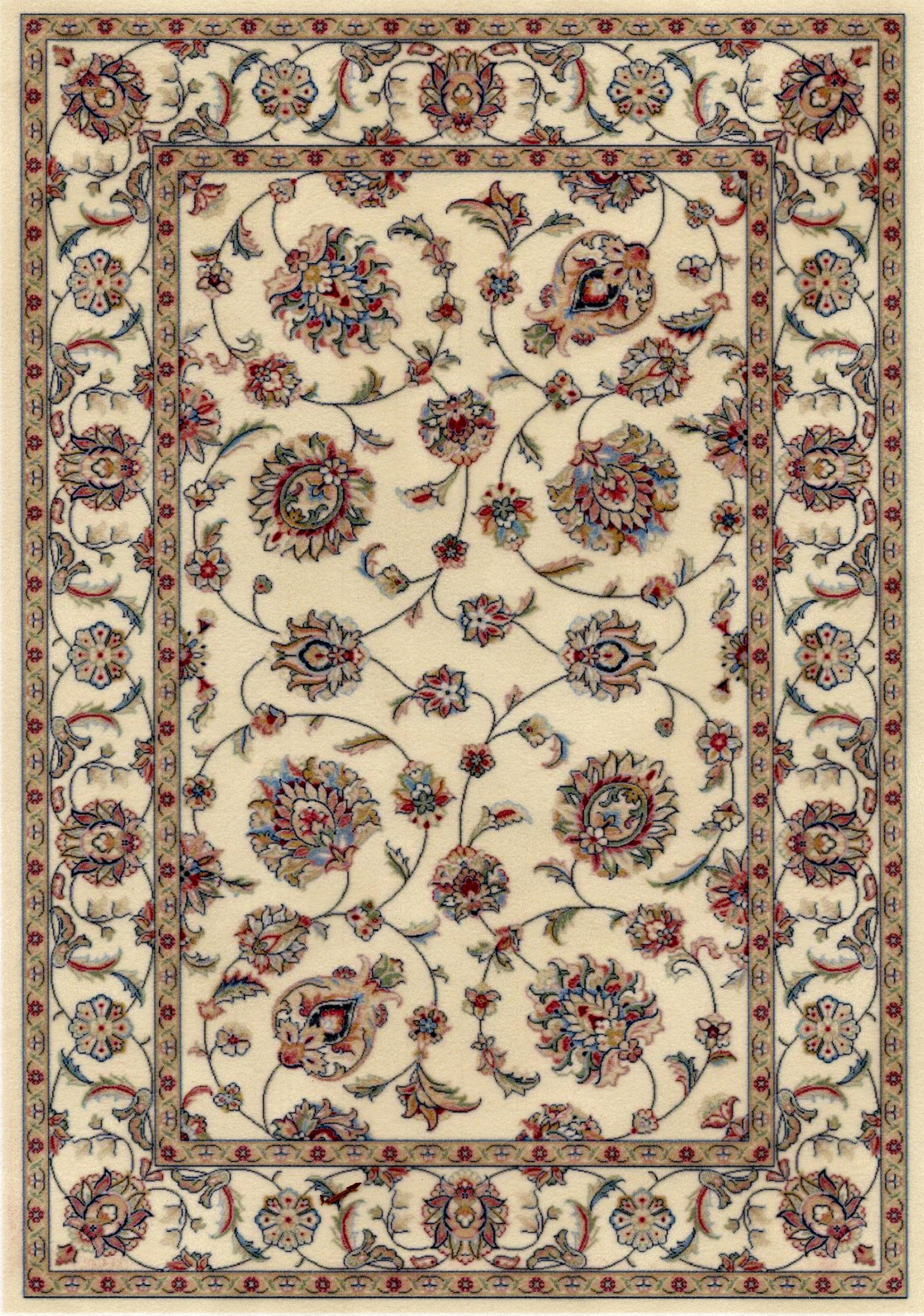 This is a 1:12 scale dollhouse area rug in ivory, gold, black, green and burgundy. It measures approximately 7-3/8" x 10-1/2". Because colors don't always appear the same on every monitor, the actual dollhouse rug may be a slightly different color than what you see on your screen. The dollhouse rug is printed on velvet paper giving it the look and feel of a real rug. Velvet paper is heavier than regular paper resulting in a rug that lies flatter than rugs printed on thinner paper products. It is about the thickness of card stock but not stiff. It has velvet flocking on one side and plain paper on the back side.