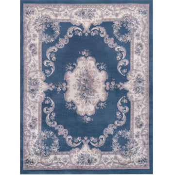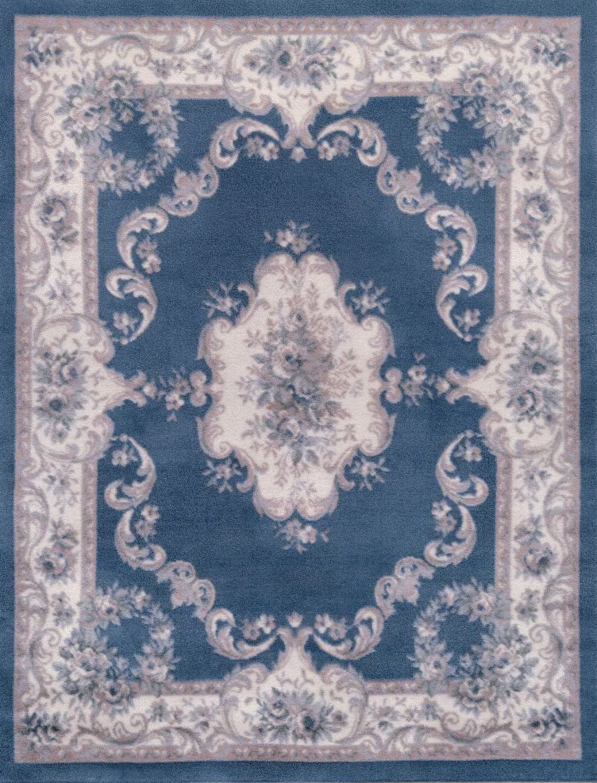 This is a 1:12 or 1" scale dollhouse miniature area rug in blue and ivory. It measures approximately 7-1/8" x 9-5/8". Because colors don't always appear the same on every monitor, the actual dollhouse rug may be a slightly different color than what you see on your screen. The dollhouse rug is printed on velvet paper giving it the look and feel of a real rug. Velvet paper is heavier than regular paper resulting in a rug that lies flatter than rugs printed on thinner paper products. It is about the thickness of card stock but not stiff. It has velvet flocking on one side and plain paper on the back side.