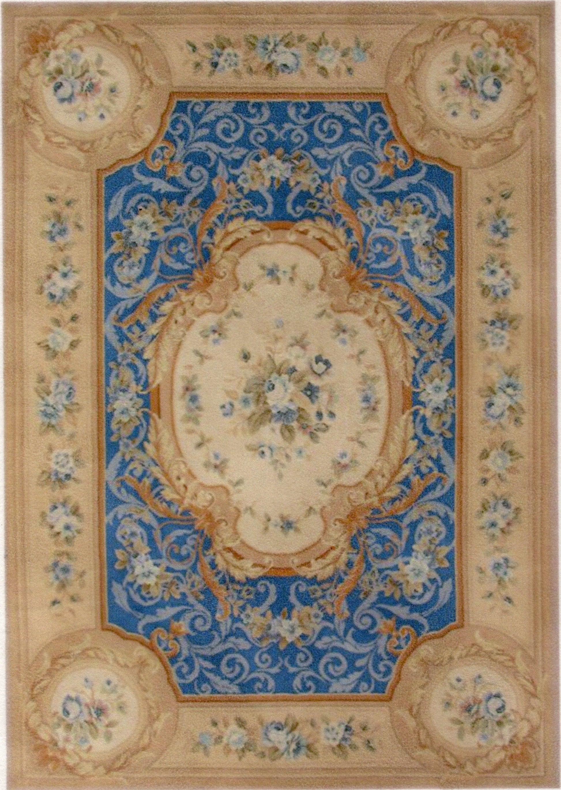 This is a 1:12 or 1" scale dollhouse miniature area rug in blue and gold. It measures approximately 7" x 10". Because colors don't always appear the same on every monitor, the actual dollhouse rug may be a slightly different color than what you see on your screen. The dollhouse rug is printed on velvet paper giving it the look and feel of a real rug. Velvet paper is heavier than regular paper resulting in a rug that lies flatter than rugs printed on thinner paper products. It is about the thickness of card stock but not stiff. It has velvet flocking on one side and plain paper on the back side.