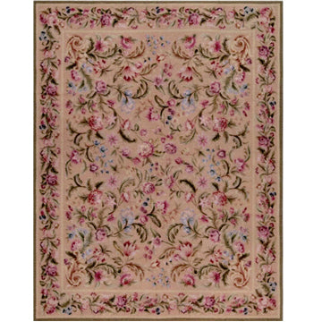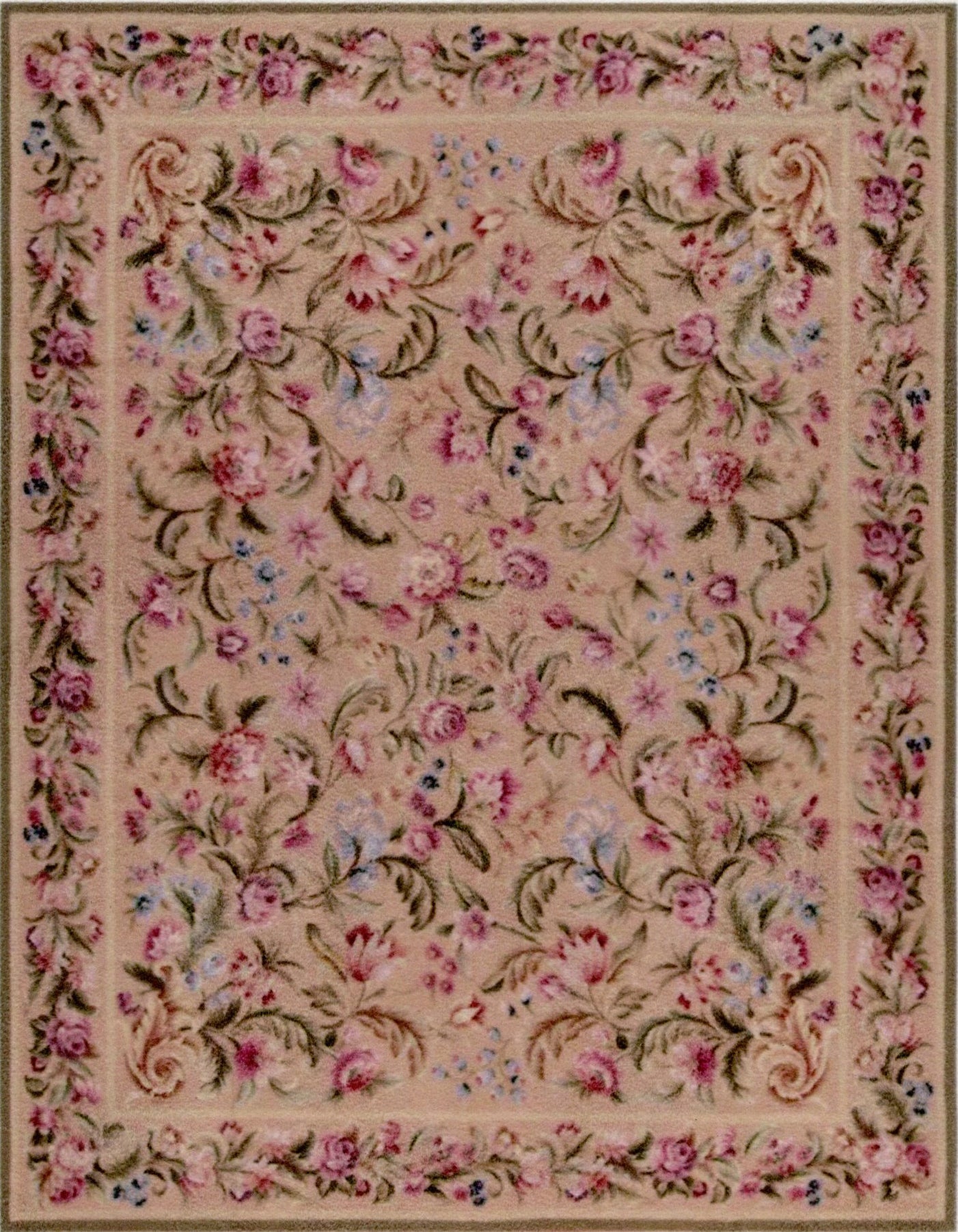 This is a 1:12 or 1" scale dollhouse miniature area rug with a tan background and blue and pink flowers. It measures approximately 7" x 9". Because colors don't always appear the same on every monitor, the actual dollhouse rug may be a slightly different color than what you see on your screen. The dollhouse rug is printed on velvet paper giving it the look and feel of a real rug. Velvet paper is heavier than regular paper resulting in a rug that lies flatter than rugs printed on thinner paper products. It is about the thickness of card stock but not stiff. It has velvet flocking on one side and plain paper on the back side.