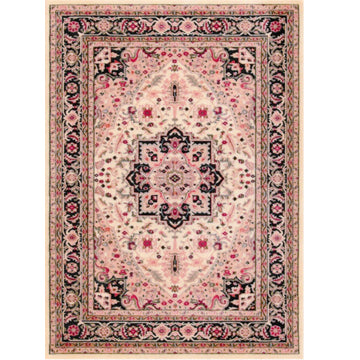 This is a 1:12 or 1" scale dollhouse miniature area rug ivory and beige background. It measures approximately 7" x 9-1/2". Because colors don't always appear the same on every monitor, the actual dollhouse rug may be a slightly different color than what you see on your screen. The dollhouse rug is printed on velvet paper giving it the look and feel of a real rug. Velvet paper is heavier than regular paper resulting in a rug that lies flatter than rugs printed on thinner paper products. It is about the thickness of card stock but not stiff. It has velvet flocking on one side and plain paper on the back side.