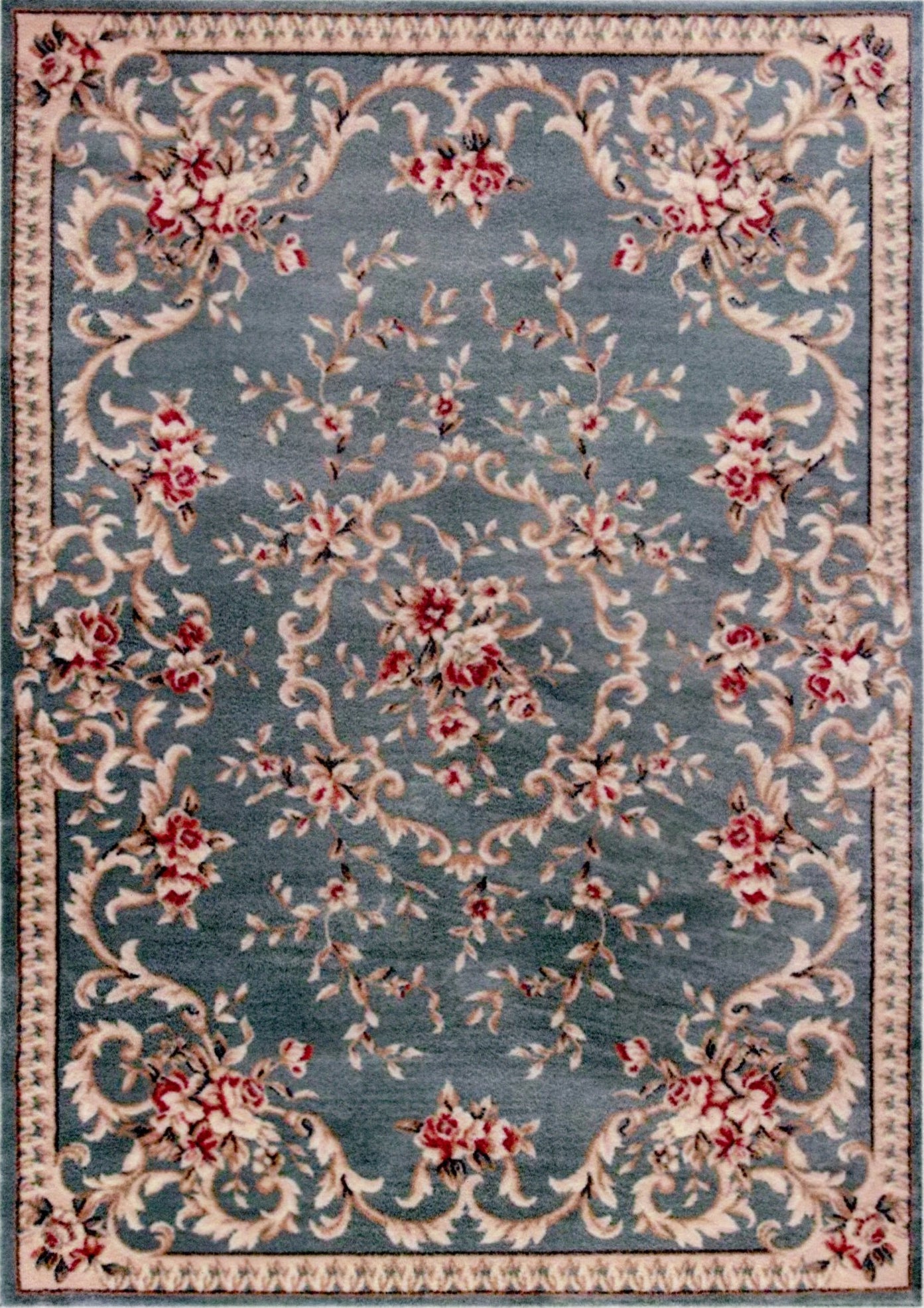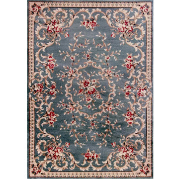 This is a 1:12 or 1" scale floral dollhouse miniature area rug in blue, burgundy and ivory. It measures approximately 7" x 9-3/4". Because colors don't always appear the same on every monitor, the actual dollhouse rug may be a slightly different color than what you see on your screen. The dollhouse rug is printed on velvet paper giving it the look and feel of a real rug. Velvet paper is heavier than regular paper resulting in a rug that lies flatter than rugs printed on thinner paper products. It is about the thickness of card stock but not stiff. It has velvet flocking on one side and plain paper on the back side.