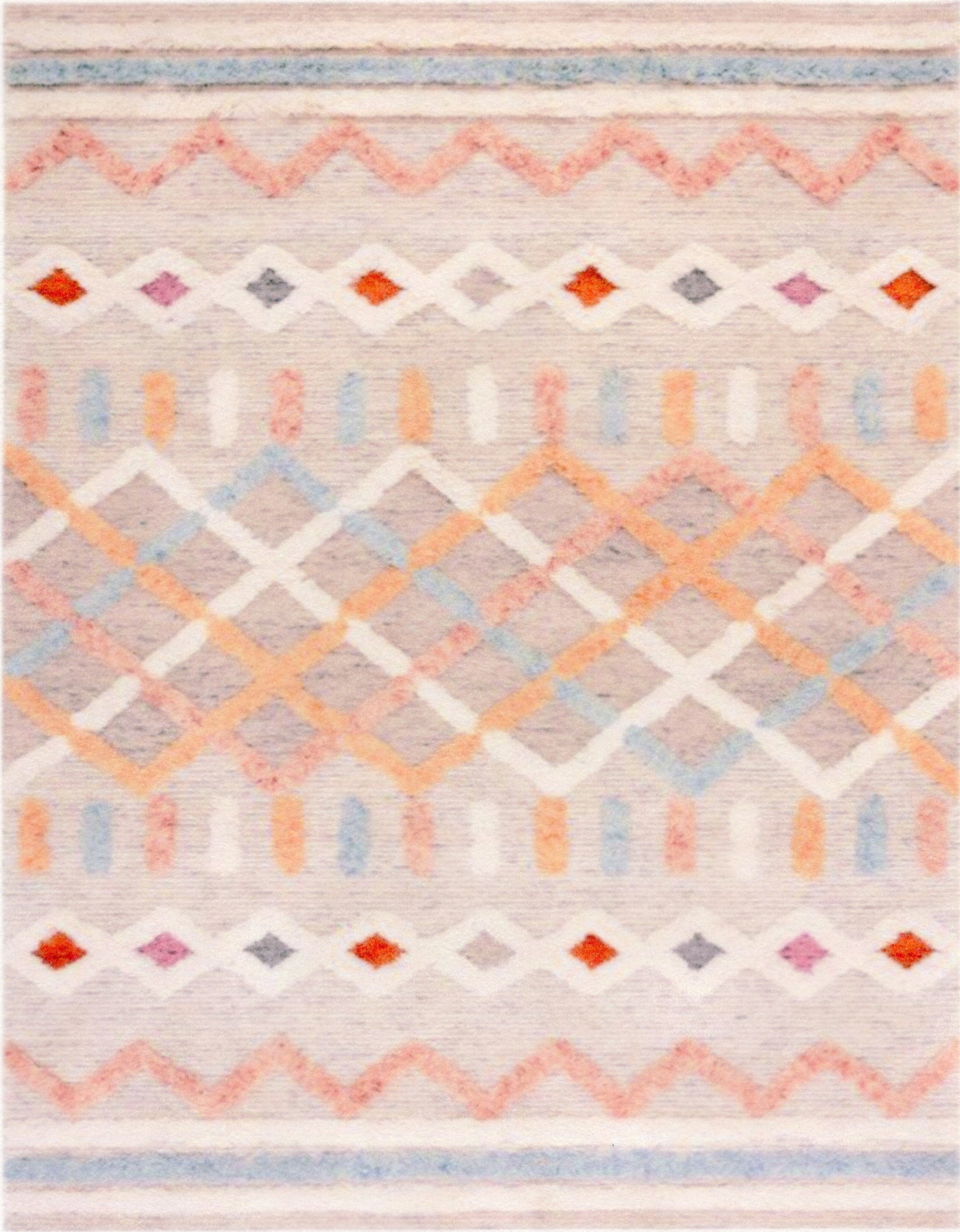 This is a 1:12 or 1" scale dollhouse miniature area rug in pastel colors for a southwestern decor. It measures approximately 7-1/2" x 9-5/8". Because colors don't always appear the same on every monitor, the actual dollhouse rug may be a slightly different color than what you see on your screen. The dollhouse rug is printed on velvet paper giving it the look and feel of a real rug. Velvet paper is heavier than regular paper resulting in a rug that lies flatter than rugs printed on thinner paper products. It is about the thickness of card stock but not stiff. It has velvet flocking on one side and plain paper on the back side.