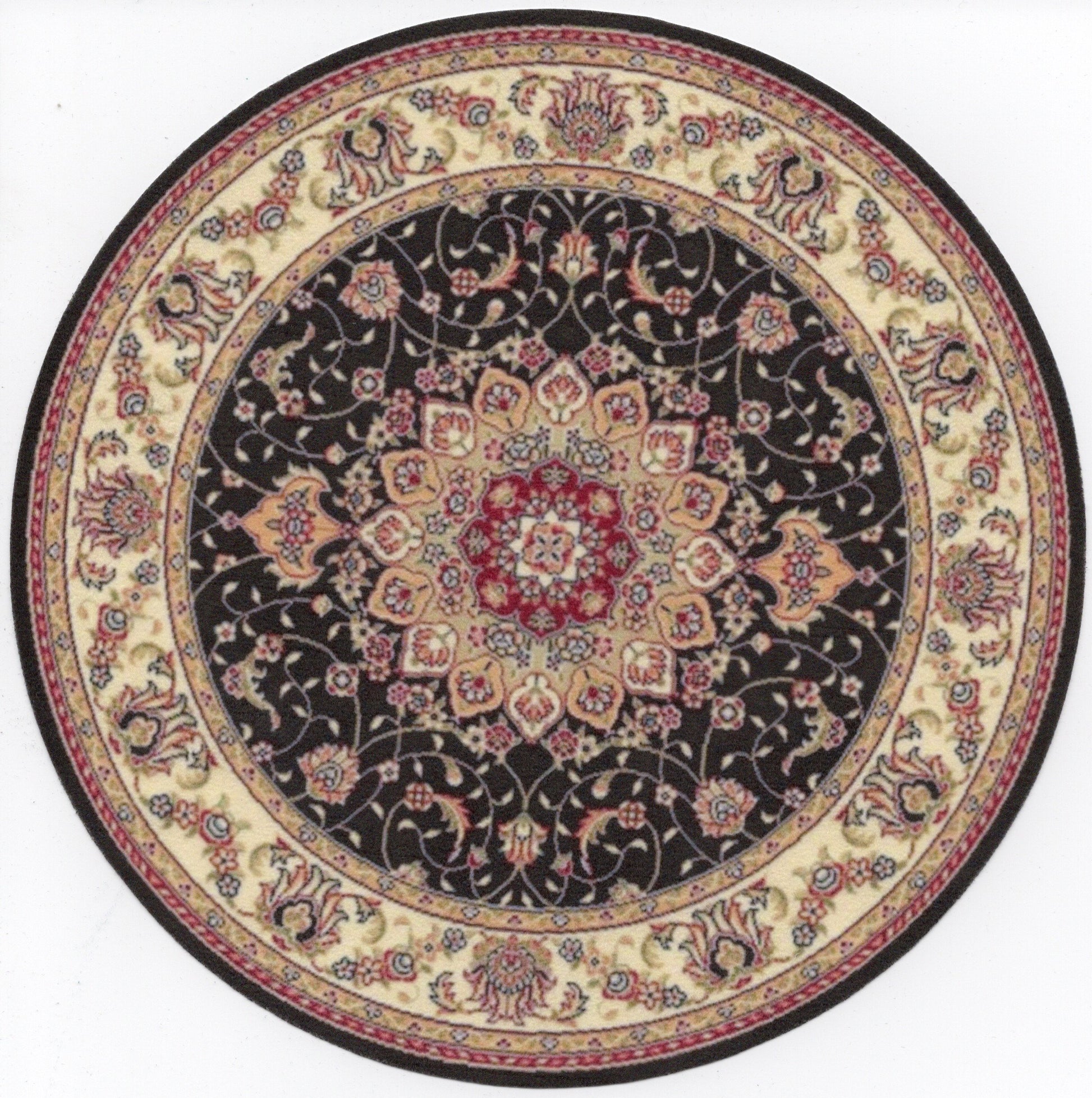 This is a really beautiful 1:12 or 1" scale round dollhouse miniature area rug in black, red, ivory, gold and green. It measures approximately 8". Because colors don't always appear the same on every monitor, the actual dollhouse rug may be a slightly different color than what you see on your screen. The dollhouse rug is printed on velvet paper giving it the look and feel of a real rug. Velvet paper is heavier than regular paper resulting in a rug that lies flatter than rugs printed on thinner paper products. It is about the thickness of card stock but not stiff. It has velvet flocking on one side and plain paper on the back side.