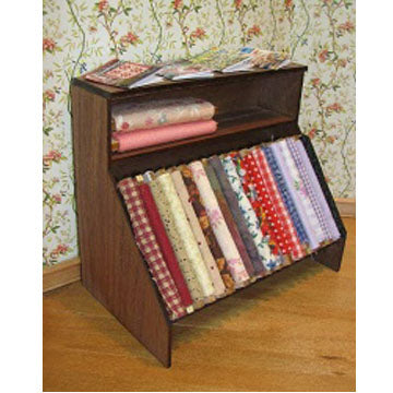 Dragonfly International Fabric Display Unit kit walnut measures 3-1/2" Tall x 4" Wide x 2-1/2" Deep. Fabric bolts and accessories are not included with the kit. We do carry the fabric bolts and labels in a pack of 50 or you can purchase ready-made fabric bolts. Holds 15-18 fabric bolts.