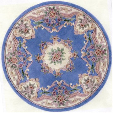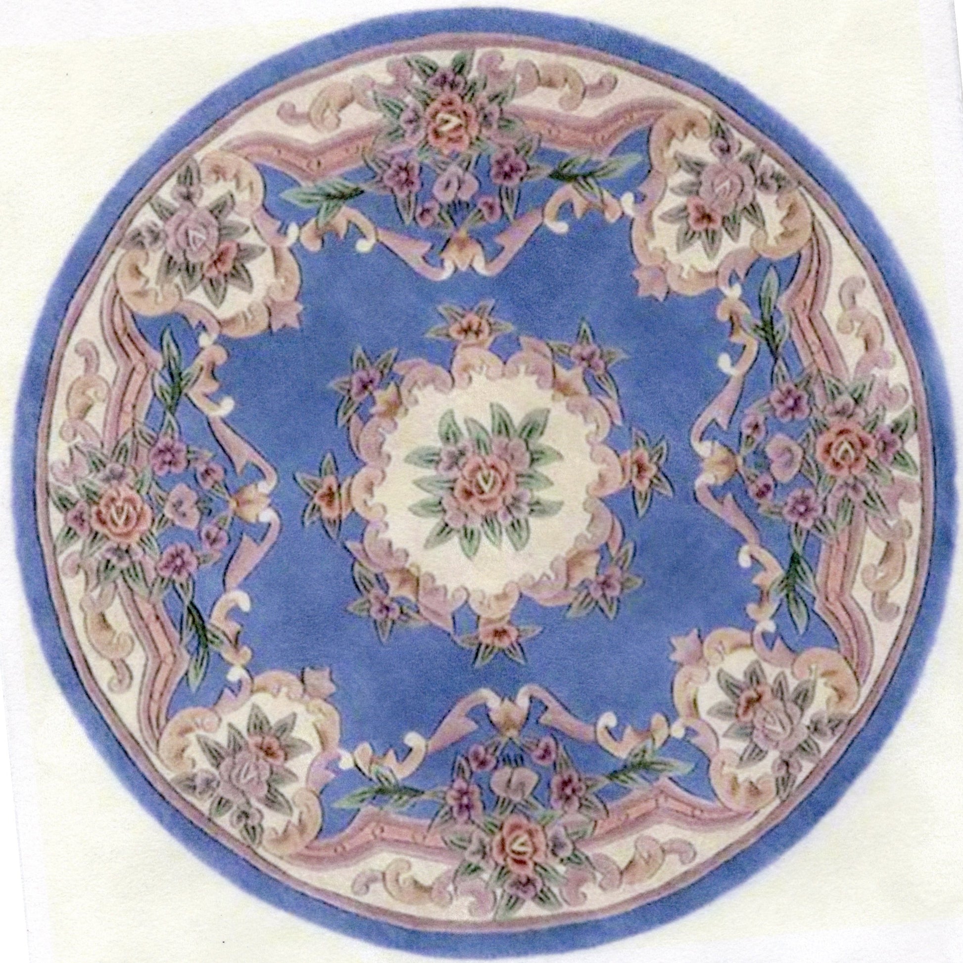 This is a 1:12 scale round floral dollhouse area rug in blue and ivory with pink flowers. It measures approximately 8". Because colors don't always appear the same on every monitor, the actual dollhouse rug may be a slightly different color than what you see on your screen. The dollhouse rug is printed on velvet paper giving it the look and feel of a real rug. Velvet paper is heavier than regular paper resulting in a rug that lies flatter than rugs printed on thinner paper products. It is about the thickness of card stock but not stiff. It has velvet flocking on one side and plain paper on the back side.