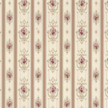 1:24, 1/2" Scale Dollhouse Miniature Wallpaper Pink Flowers on Beige Stripe (3 SHEETS)