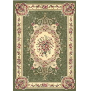 This is a 1:24 or 1/2" scale Oriental dollhouse miniature area rug green, burgundy and ivory. It measures approximately 3-1/2" x 5". Because colors don't always appear the same on every monitor, the actual dollhouse rug may be a slightly different color than what you see on your screen. The dollhouse rug is printed on velvet paper giving it the look and feel of a real rug. Velvet paper is heavier than regular paper resulting in a rug that lies flatter than rugs printed on thinner paper products. It is about the thickness of card stock but not stiff. It has velvet flocking on one side and plain paper on the back side.