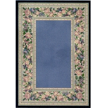 This is a 1:24 or 1/2" scale dollhouse miniature area rug with a blue center and floral border. It measures approximately 3-15/16" x 5-11/16". Because colors don't always appear the same on every monitor, the actual dollhouse rug may be a slightly different color than what you see on your screen. The dollhouse rug is printed on velvet paper giving it the look and feel of a real rug. Velvet paper is heavier than regular paper resulting in a rug that lies flatter than rugs printed on thinner paper products. It is about the thickness of card stock but not stiff. It has velvet flocking on one side and plain paper on the back side.