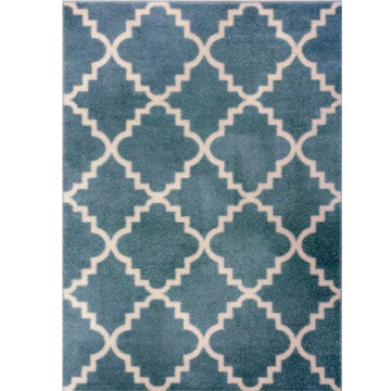 This is a 1:24 or 1/2" scale modern dollhouse miniature area rug in blue and off-white. It measures approximately 3-7/8" x 5-3/8". Because colors don't always appear the same on every monitor, the actual dollhouse rug may be a slightly different color than what you see on your screen. The dollhouse rug is printed on velvet paper giving it the look and feel of a real rug. Velvet paper is heavier than regular paper resulting in a rug that lies flatter than rugs printed on thinner paper products. It is about the thickness of card stock but not stiff. It has velvet flocking on one side and plain paper on the back side.
