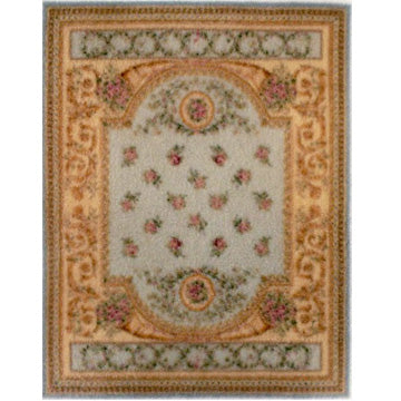 This is a 1:48 or 1/4" scale floral dollhouse miniature area rug with a light aqua and ivory background. It measures approximately 2 1/2 x 3 13/16 inches. Because colors don't always appear the same on every monitor, the actual dollhouse rug may be a slightly different color than what you see on your screen. The dollhouse rug is printed on velvet paper giving it the look and feel of a real rug. Velvet paper is heavier than regular paper resulting in a rug that lies flatter than rugs printed on thinner paper products. It is about the thickness of card stock but not stiff. It has velvet flocking on one side and plain paper on the back side.
