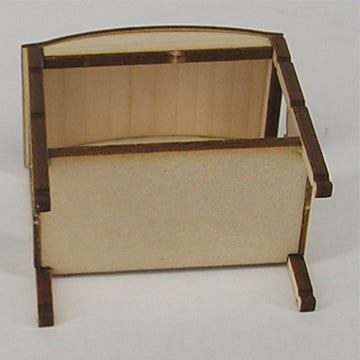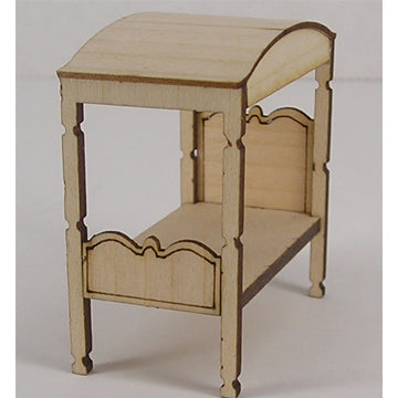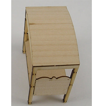 This is a 1:48 or 1/4" scale dollhouse miniature furniture kit for a curved top canopy bed. This is a laser cut kit by Needles N Minis. It is cut from basswood. Kit includes detailed instructions.