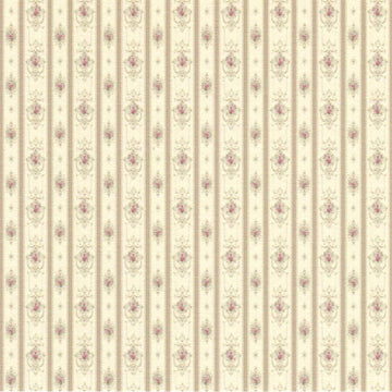 1:48, 1/4" Scale Dollhouse Miniature Wallpaper Ivory Stripe Pink Flowers